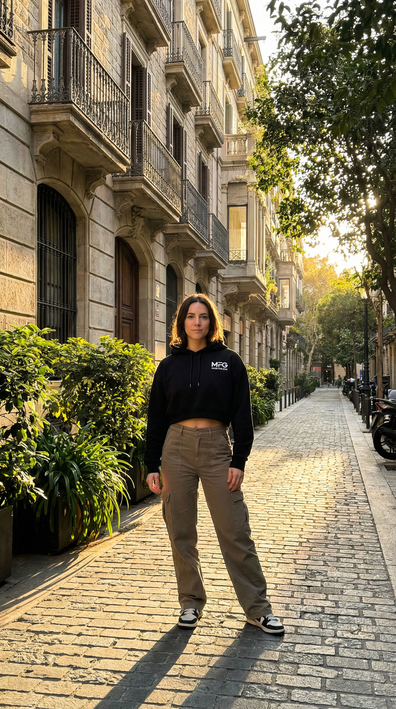 MFG WOMAN CLASSIC CROP HOODIE – BLACK / WHITE LOGO 🔥